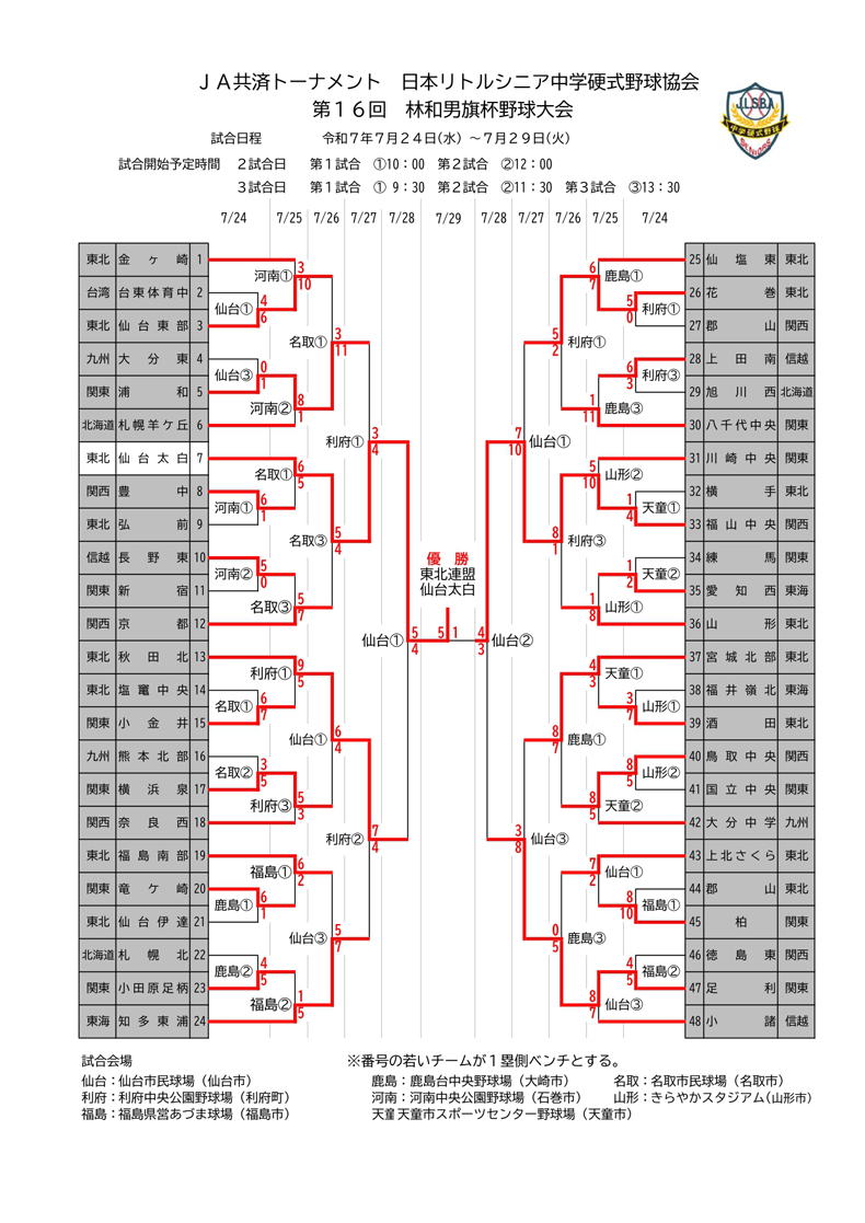 2025年 JA共済トーナメント日本リトルシニア中学硬式野球協会第16回林和男旗杯野球大会 結果