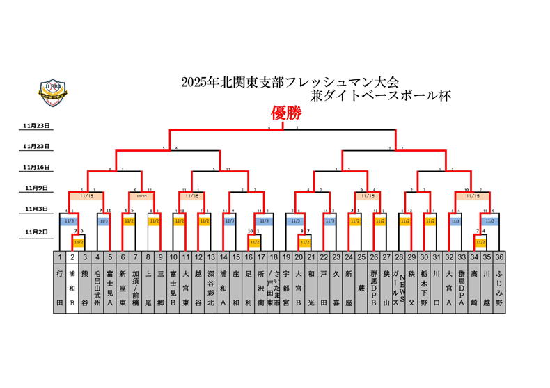 2025年 北関東支部フレッシュマン大会兼ダイトベースボール杯 結果